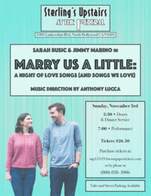 Sterling's Upstairs at The Federal begins it's November lineup with musical theatre performers Sarah Busic and Jimmy Marino. You'll revel in this premiere debut show about being in love.