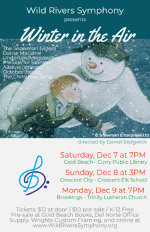Wild Rivers Symphony is proud to present our Winter 2019 concert "Winter in the Air" directed by Daniel Sedgwick.