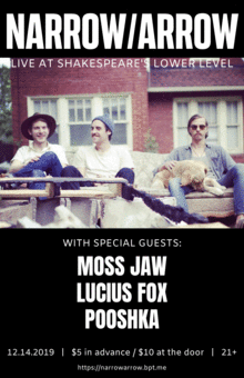 Admission: $5 adv. / $10 ATD ___________________________________________________________________ + Narrow/Arrow Mansfield, OH http://narrowarrow.bandcamp.com