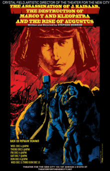 We are very honored to have been invited to put "The Assassination of J. Kaisaar: The Rise of Augustus up for a second run at Theater for the New City, Crystal Field, Artistic Director. It is a re-imagined version of Julius Caesar and Antony and Cleopatra set in a dystopian future but with American lingo - like Tony Soprano meets Mad Max. The theme is that political assassination can have many unintended consequences re: the conspirators Brutus and Cassius thought they were saving the free men (and women) of the Republic but instead put the nails into its coffin because the assassination brought Octavius to the fore who would go on to become the first Roman Emperor (Augustus). So the days of the Republic with free men (and women) deciding their own fates had ended with Caesar's murder with the situation being analogous to the take over by the corporatist state.