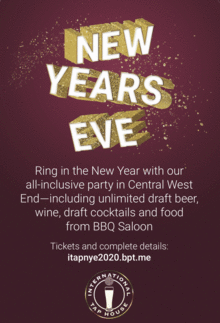 Ring in the New Year with iTap and BBQ Saloon! Join us for a all inclusive party Dec 31st, 8pm to 1am, at iTap Central West End!