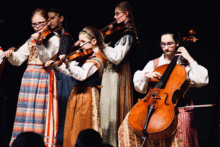 What do they play? Great, energetic, rhythmic, beautifully styled folk music meant for dance! This group teaches youth a living tradition, the music from the Nordic countries of Finland, Denmark, Sweden and Norway. The music is taught in a cultural context linked to history, dance, a way of life, and to the current folk music scene. All of the music, including harmonies, is learned the traditional way, by ear. They work hard to have good sound production, clean technique, and good ensemble skills. The rules from day one have been (in no particular order) smile, have fun, and keep your bow moving! Interested families are encouraged to contact the group to arrange a visit. New members start every September.