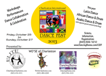 This year's partnership includes Elite Dance International showcasing Latin Dance, Wo'Se Of Charleston showcasing African Dance Arts and DancingBeena showcasing Arabic Bellydance Arts. A portion of the proceeds to benefit College of Charleston, Arabic Club.