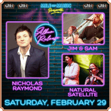 Who: Nicholas Raymond (Fox Cities), Jim and Sam (Los Angeles), Natural Satellite (Menasha) What: An album release event for Nicholas Raymond! When: Saturday, February 29, 2020 at 7:00 p.m. (Doors at 6:00 p.m.) Where: Gibson Community Music Hall (211 W. College Avenue, Appleton) Tickets: $10 in advance, $15 at the door! (Tax/fees may apply.)