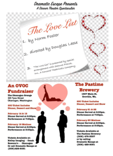 Please join OVOC as we partner with Dramatic Escape for a Valentine's Day Weekend fundraiser! Enjoy dinner, dessert, and a show, along with the option to purchase wine. You are sure to be delighted and entertained with this one-of-a-kind dinner theater experience with OVOC and Dramatic Escape!