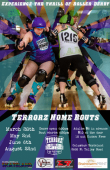Terrorz Roller Derby vs. The Dire Skates from Richmond, IN. Doors open at 6pm First whistle is at 6:30pm