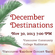 'Tis the season for travel, so the Rainbow Concert Band would like to invite you to voyage with us to Puerto Rico, Scotland, Spain, Russia, England, Mexico, Israel, France, and even Canada. The company is cheery, there is no "fasten seat-belts" sign to heed, and you don't need to spend a lot of time packing for the trip.