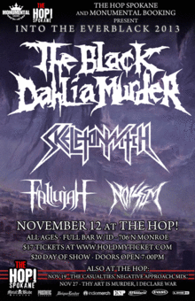 The Black Dahlia Murder, Skeletonwitch, Fallujah and Noisem play an all ages show at The Hop in Spokane, WA