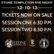 $20 per person Tickets include 8oz pours of each the Stone RIS and the Stone RIS aged in Templeton Rye Barrels, and a 2oz pour of Tempelton Rye Whiskey!