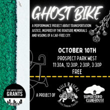 Ghost Bike is a community-centered performance project that examines the bicycle as a queer expression of vulnerability, an anti-capitalist symbol of freedom, and a powerful tool for climate, transportation, and social justice.