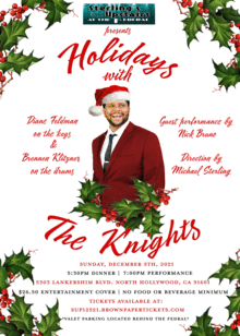 Beautiful holiday songs (both timeless and new Christmas treasures), and Standards from Broadway and the Great American Songbook. If you can take home anything from this show , the Knights hope it is the same joy, love, and happiness they feel...something we all need during this time. Sit back, relax, have a drink, and enjoy a night full of love and happiness as we reflect on the most wonderful time of the year- Christmas and all of the joy it brings! Youll hear my inner monologue of a new dad trying to navigate getting ready for parenthood mixed in with holiday songs that are sure to make you forget about your troubles.