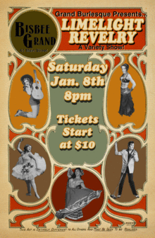 An eclectic night of song, dance, and artistry! Our shows bring you a wild & memorable night of entertainment & games. Hosted by stunning, historic Bisbee Grand Hotel/Saloon, theres seasonal drink specials, local brews & a cafe with rave reviewed bar food! Our shows tend to sell out and always leave the crowd talking for days! We hope you join us and have an amazing time!