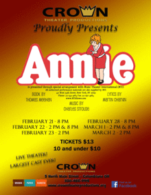 Annie is a Broadway musical based upon the popular Harold Gray comic strip Little Orphan Annie, with music by Charles Strouse, lyrics by Martin Charnin, and the book by Thomas Meehan. The original Broadway production opened in 1977 and ran for nearly six years, setting a record for the Alvin Theatre (now the Neil Simon Theatre). The musical's songs "Tomorrow" and "Hard-Knock Life" are among its most popular musical numbers.
