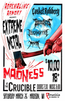 EXTREME METAL MADNESS - Casket Robbery is headlining this killer show with Mike's favorites Minnesota band, Coffin Rites, as direct support. Madison's Yotuma and Milwaukee's Illusion of Fate will start off the night!