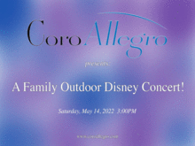 Disney is synonymous with entertainment for children. This concert is a chance to bring your whole family for an afternoon of Disney songs, activities for kids, great food and drinks. Coro Allegro is thrilled to host this event, which will also feature other Northern Delaware vocal talent.