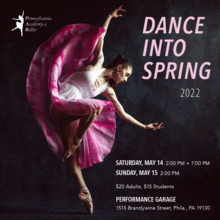 The Pennsylvania Academy of Ballet's annual spring performance returns to the Performance Garage for the first time since 2019. The performance features original choreography by Bryan Koulman, Nino Gvazava, and Pamela Waters, as well as classical ballet staged by Melinda Pendleton and performed by the students of the academy.