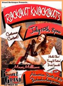 Were rocking out with a wicked awesome night of steamy rock and roll burlesque! Come dressed up in your best rocker wear and enjoy our fabulous performers, audience participation, drink specials, fun party favors and lots of surprises!
