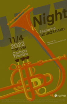 The Bellevue College Music Department presents JAZZ NIGHT: BC Jazz Band Concert on Friday, November 4, 2020, at 7:30 pm at Carlson Theatre.