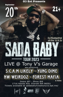 O3 Entertainment Presents: Sada Baby Live at Tony V's Wed. Sept 20th 2023 Doors at 7pm Show at 8pm