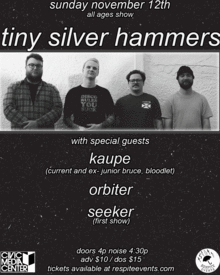 Tiny Silver Hammers, Kaupe, Orbiter, Seeker at The cmc All Ages $10adv/$15dos 4PM