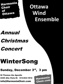 Harmonia Choir of Ottawa with The Ottawa Wind Ensemble, director Mark Rocheleau, present a concert of seasonal music, both new and 'classic.' Come ready to sing!