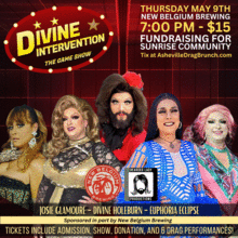 Bearded Lady Productions is thrilled to return with another round of "Divine Intervention," the sell-out smash hit game show FUNdraiser. New questions, new entertainers! Join us on Thursday, May 9, at 7:00 p.m. at New Belgium Brewing for an evening of wit, charm, and surprises. This glittering game show is a fundraiser, with all profits donated to Sunrise Community for Recovery and Wellness. Ages 21 and up. Tickets are $15 and are available at www.AshevilleDragBrunch.com.