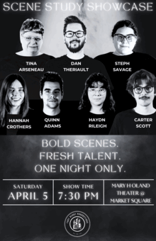 Featuring our Advanced Scene Study Troupe, this showcase brings seven powerful scenes from plays never before performed in Saint John to life on stage. These talented actors have spent months refining their craft, and now, they are ready to share their work with you.