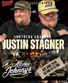 You've seen the videos, now experience the comedy live! Atomic Johnny's in Gadsden is thrilled to host Justin Stagner AKA Southern Grandpa for a night of side-splitting stand-up. Come witness the unfiltered humor and unique perspective that has captivated over 4 million online fans, and get the chance to meet the man behind the legendary Southern Grandpa persona.