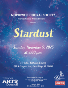 Of the many sources of inspiration to which humans have turned over the course of our existence, few can rival the immense splendor of the night sky. Stars, planets, our moon, the natural stillness that follows the suns daily departure theres a romance, a mystery, a timelessness accompanying the nighttime that seems to disintegrate each morning with the first rays of sunlight. NWCS is excited to explore these ideas with Stardust, a concert program of choral music about stars, planets, and the night sky. Repertoire includes music of Melissa Dunphy, Erik Esenvalds, Jonathan Dove, Eric Whitacre, Johannes Brahms, and more.