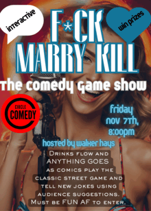 Drinks flow and anything goes as comics play the classic street game and tell new jokes using audience suggestions. Must be FUN AF to enter. Hosted by Walker Hays!