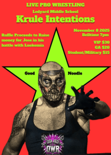 Witness the unbridled chaos as KRULE comes to Outkast Wrestling! Don't miss the most unpredictable night in indie wrestling as Krule brings his unique brand of mayhem to the ring.