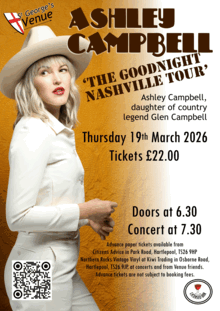 Ashley is appearing at St George's Venue as part of her Goodnight Nashville tour with her band.