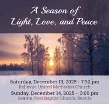 Sunday, December 14, 2025, 3:00 pm; Seattle First Baptist Church; 1111 Harvard Ave, Seattle, WA 98122