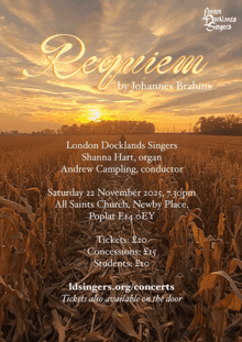 This spring London Docklands Singers present Johannes Brahms' Requiem in the beautiful surroundings of All Saints' Church, Poplar conducted by Andrew Campling.