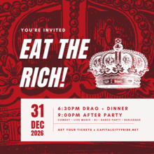 This New Year's Eve, leave basic behind and step into a night of unapologetic queer extravagance. EAT THE RICH is not just a partyit's a revolutionary toast to queer joy, chosen family, and the fabulous future we demand.