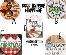 Join us on November 15th from 3-5 to make a door hanger to take home. Choose from 5 options. All materials will be supplied.
