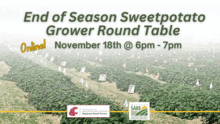 Date: Tuesday, November 18th, 2025 Time: 6pm - 7 pm Location: Via Zoom Audience: Farmers and gardeners growing Sweetpotatoes