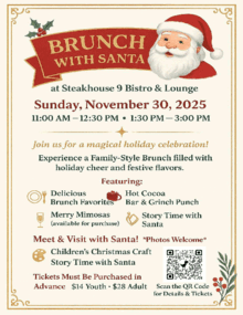 Brunch with Santa at Steakhouse 9 Bistro & Lounge