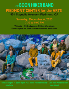The Boon Hiker Band is looking forward to another opportunity to sing in the resonant and lovely Piedmont Center for the Arts. We had a grand concert last time around and have some new tunes to share. Any of you still hanging on to this spinning ball, willing and able, come on out and give us a listen!