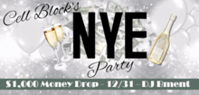 Come ring in the New Year at the Cell Block!!! Doors open at 9pm w/ $2 Michelob Ultra Bottles 9-mid, $5 Champagne Cocktail Pitchers 10-mid, and DJ Bment spinning all night! Plus, a $1,000 money drop at midnight & a free champagne toast!