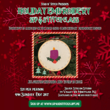 Join us on Sunday, December 21st for a festive afternoon of crafting, sipping, and connecting with fellow community members. Sarah will be instructing participants in the creation of their very own holiday embroidery. They make great ornaments, window decorations, gifts etc. All supplies will be provided and will be yours to keep. BYOB welcome.