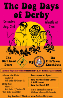 Ladies' Death and Derby Society will host another home bout on August 2nd at the New Hartford Rec Center (1 Mill St, New Hartford, NY). Their team, The TitleTown KnockOuts, will take on The Dirt Road Dears in an action-packed, hard hitting match-up.