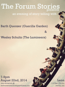 Join us for evening of creative inspiration and live storytelling at Leon Art Gallery on Friday August 22nd. We'll sip drinks, chat with fellow explorers, and listen to the unique journeys of two of the city's most celebrated creatives, Barth Quenzer and Wesley Schultz. Admission is free but donations are welcome and will support future programming at the gallery. Seating is limited to 45 and is on a first come, first served basis. Please use the ticketing link below to RSVP (Responding to this email does not reserve your spot.) Arrive promptly at 7 pm in order to get a drink, find your seat, and say hi to friends. If you're unable to RSVP in time, don't worry! We'll record the stories and share them soon. The Storytellers: