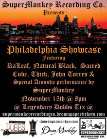 Featuring RaLeaf, Sacred Cube, Thick, Natural Black, John Torres, and an acoustic performance from SuperMonkey - Legendary Dobbs Nov 15th, 7pm start.